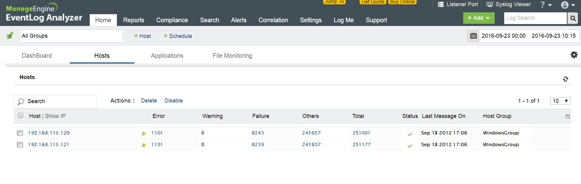 Usted puede definir cuál servidor o workstation de Windows o grupo de hosts de Windows necesitan ser supervisados. También puede activar una alerta basada en eventos generados con un tipo de registro específico, ID de evento, mensaje de log o gravedad.Las alertas de eventos se envían en tiempo real por email, sms y a través de programas personalizados.