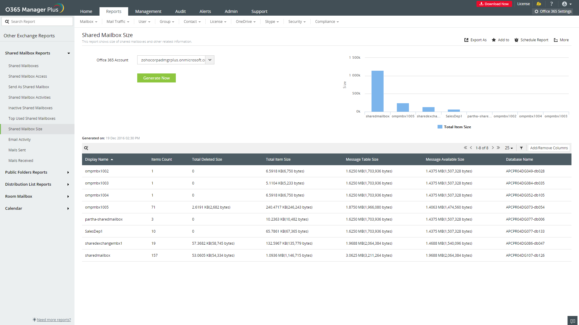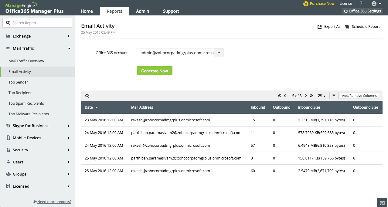 O365 Manager Plus ofrece los siguientes informes: