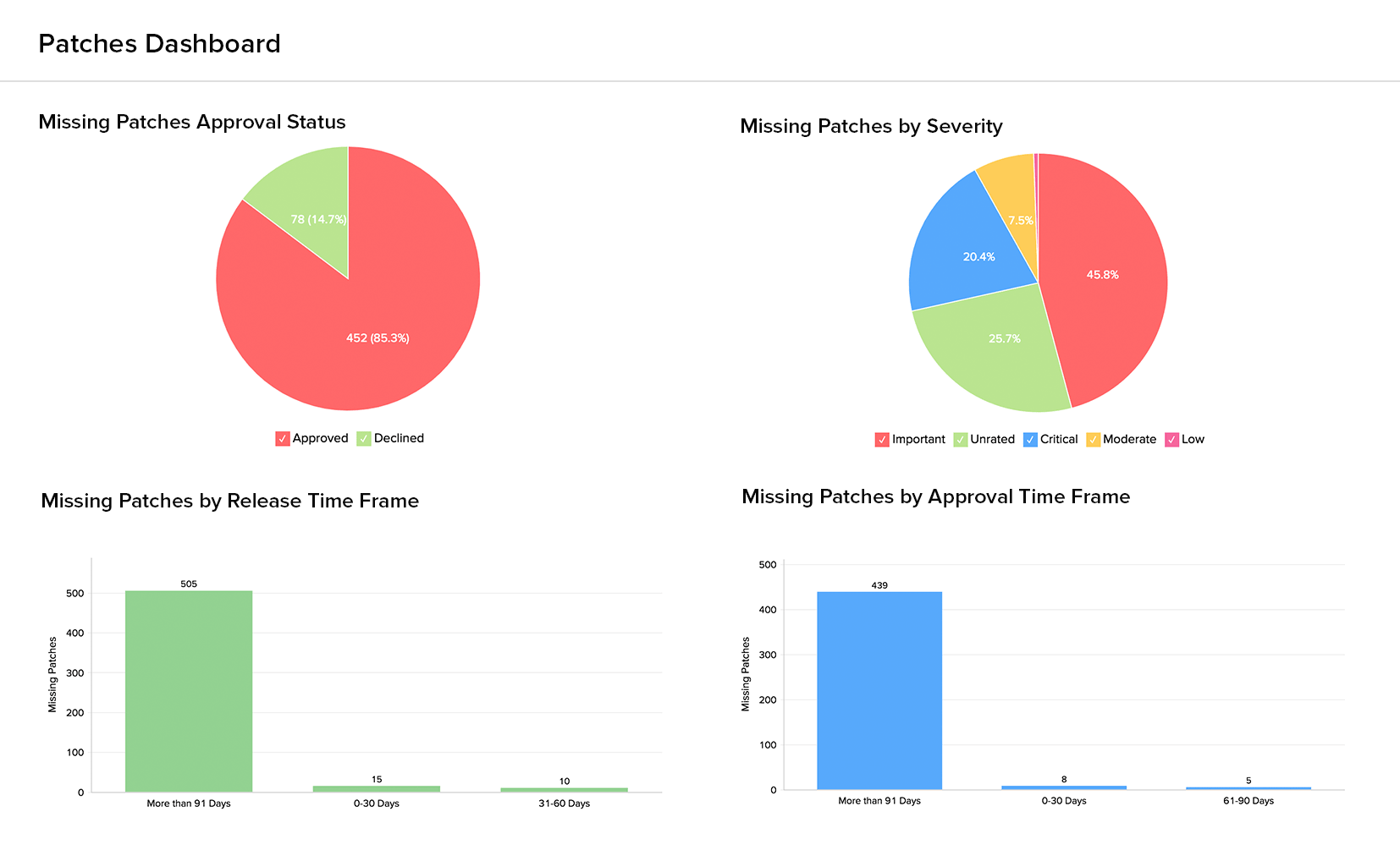 Get answers to critical questions like, "Are all my software up to date?" or "Do my devices have the right protection in place?" This will enable IT admins to deploy the right patches and software updates to secure devices that have outdated software or missing patches.