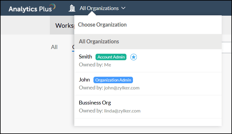 For every organization in Analytics Plus an unique ID (Organization ID) is present. The header “ZANALYTICS-ORGID“ with the 'Organization ID' should be sent with the API request to identify the organization.