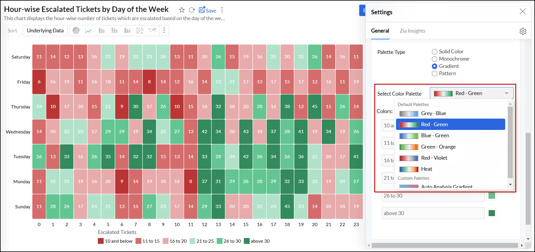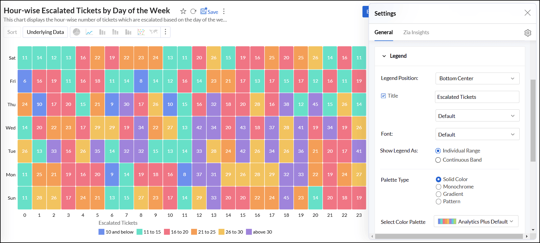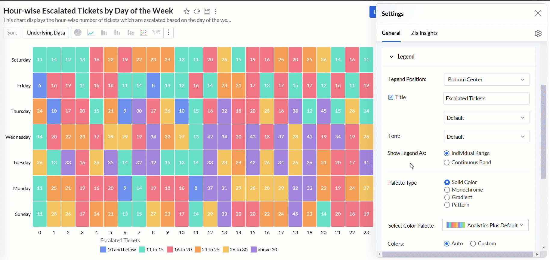 - Palette Type: Analytics Plus provides three palette types for customizing the legend colors.