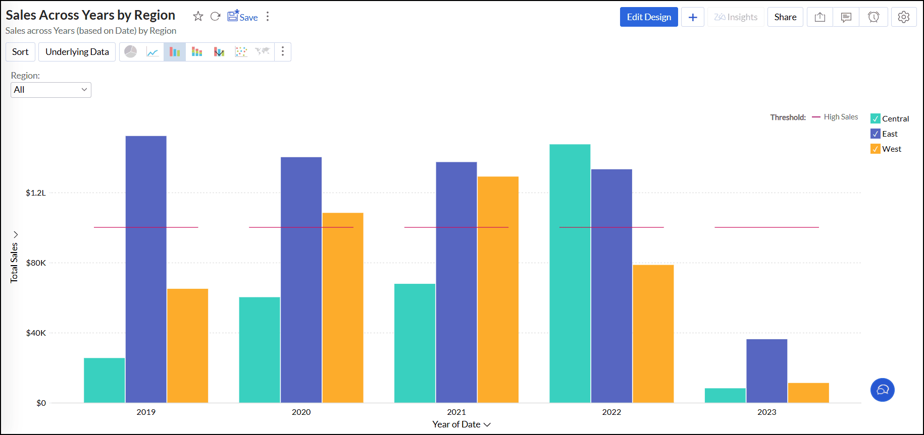 - Show Missing values: This option displays the data points with missing values in the chart. Please note that this option is displayed only when the chart has missing data points.