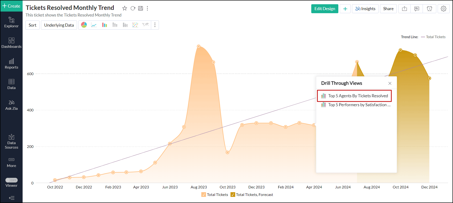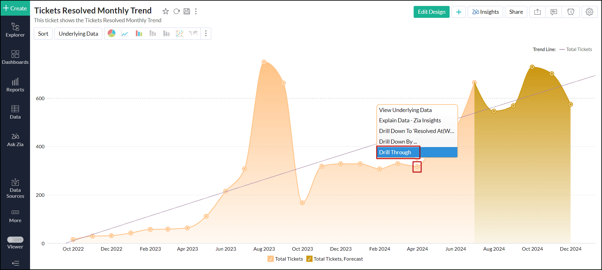 The (data) drill feature enables you to get the granular details in a report. It helps to get insights from the specific categories or sections of the data.