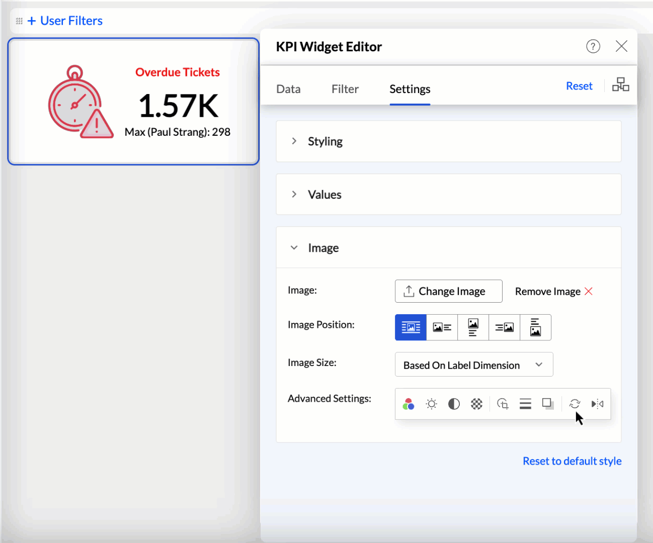 Easily change the color of the image to suit the dashboard color theme. You can also apply the Font color to the image.