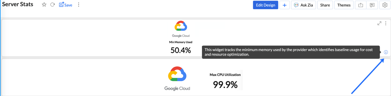 Analytics Plus allows you to equip widgets with an informational tooltip. This is achieved by enabling an information icon and providing a concise description.