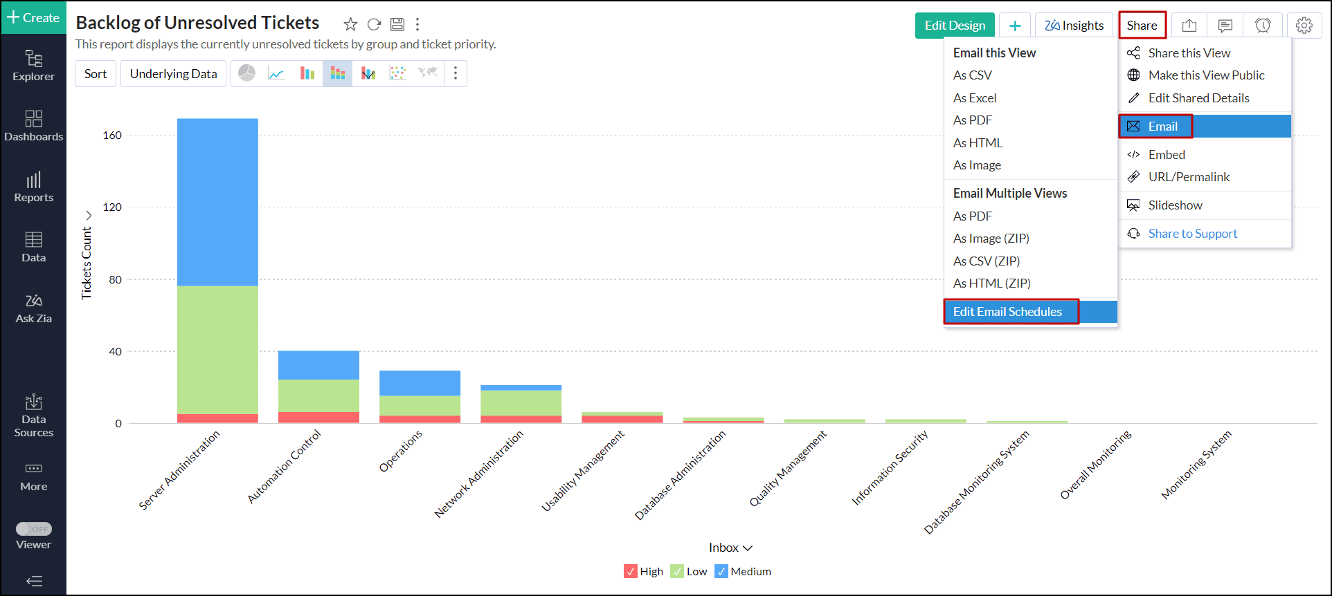 1. Open any view, and click Share > Email > Edit Email Schedules.