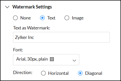• Select the Direction either Horizontal or Diagonal, based on which the watermark must be added.