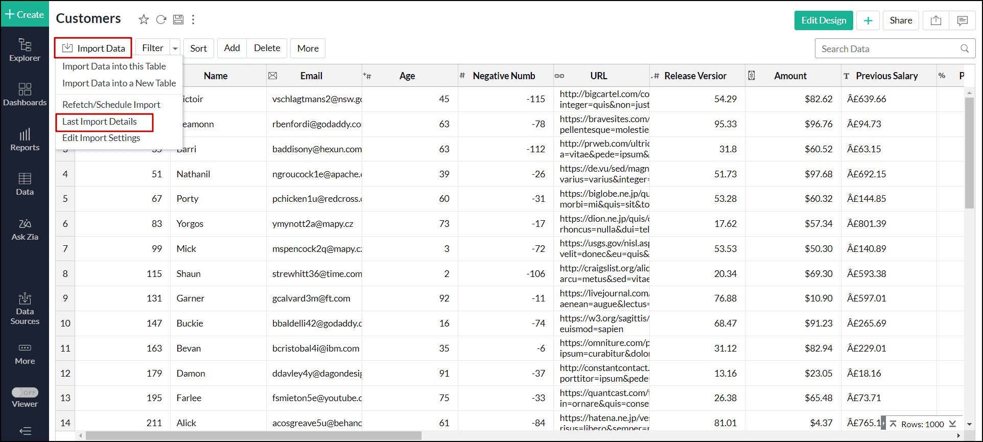 You can also view the Import Details page by opening the required table and selecting the Import Data > Last Import Details option.