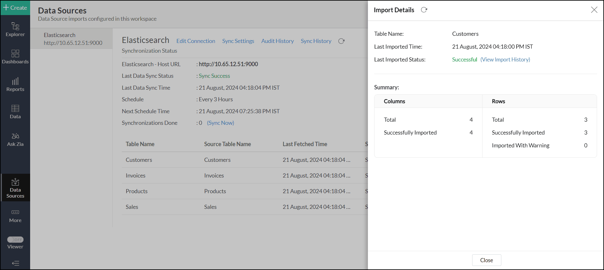 Analytics Plus enables data import from Elasticsearch, allowing you to create visualizations that reveal trends and generate valuable insights. Additionally, you can schedule imports and cross-blend data from other data sources for comprehensive analysis.
