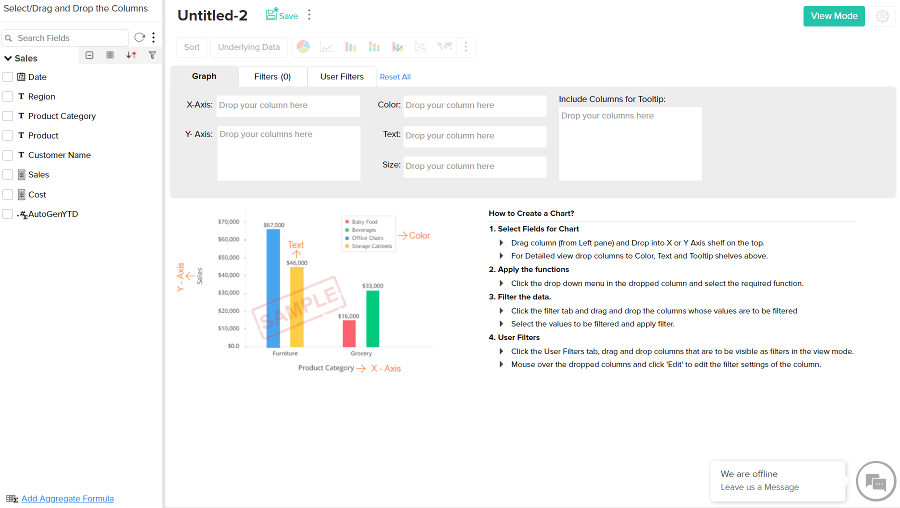 Analytics Plus allows you to add one or more columns to the Data shelf. On adding multiple columns, Analytics Plus enables you to display the data in one of the following formats: Data as Column and Data as Row.