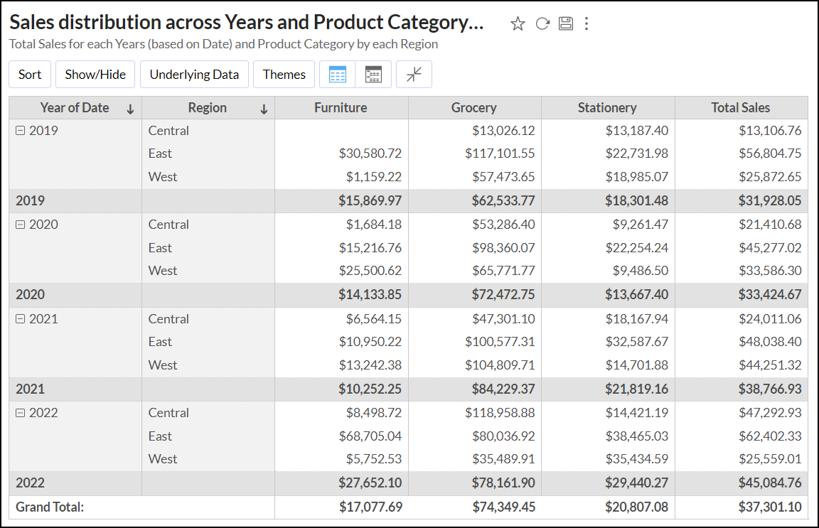 • Show Expand/Collapse icons : Enabling this option helps view the data at different levels of granularity and also makes data navigation easier.