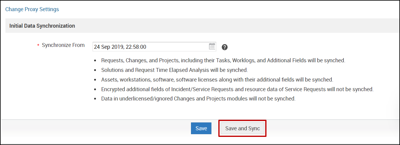 • After modifying the necessary settings, navigate to the Initial Setup tab and click the Save and Sync button.