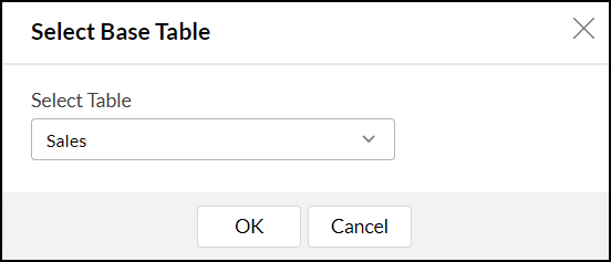 • In the pop-up that appears, choose the required table from the drop-down, and click OK.