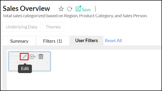 Analytics Plus also allows you to apply dynamic filters to the summary report in the form of user filters. It also offers a variety of display components for filters, such as drop-down boxes, sliders, and date range choosers. This enables users to apply filters dynamically in View mode.