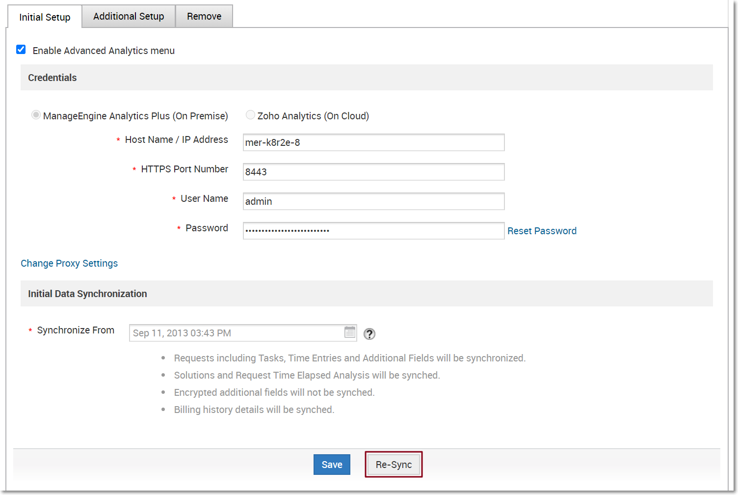 After modifying the necessary settings, navigate to the Initial Setup tab and click the Re-Sync button.