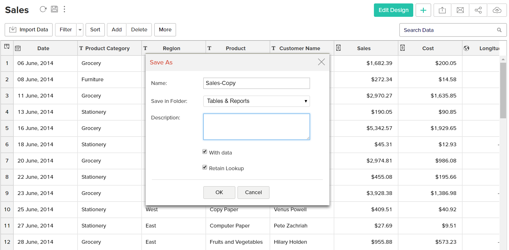 ManageEngine Analytics Plus allows you to save a copy of a table in your workspace. On copying, all formatting, formulas, etc., will be retained in the new table too. Follow the steps given below to copy a table. Open the table you want to copy.