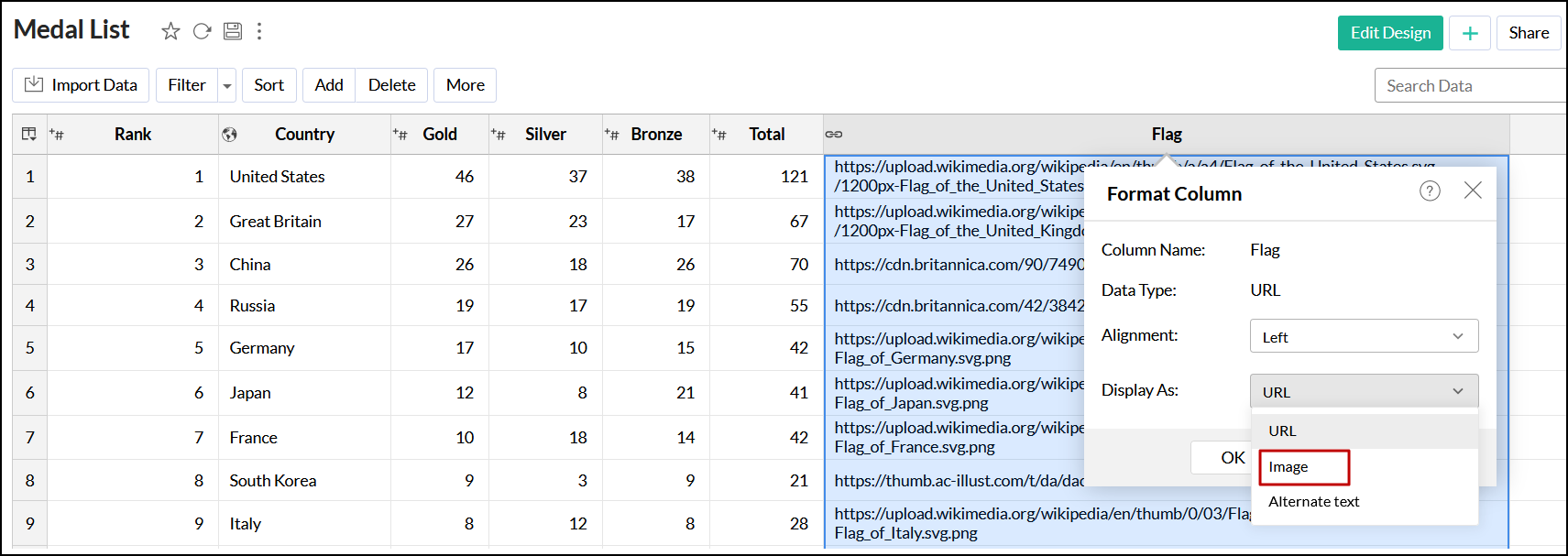 - Click OK to replace the image URLs with the corresponding images in your table.