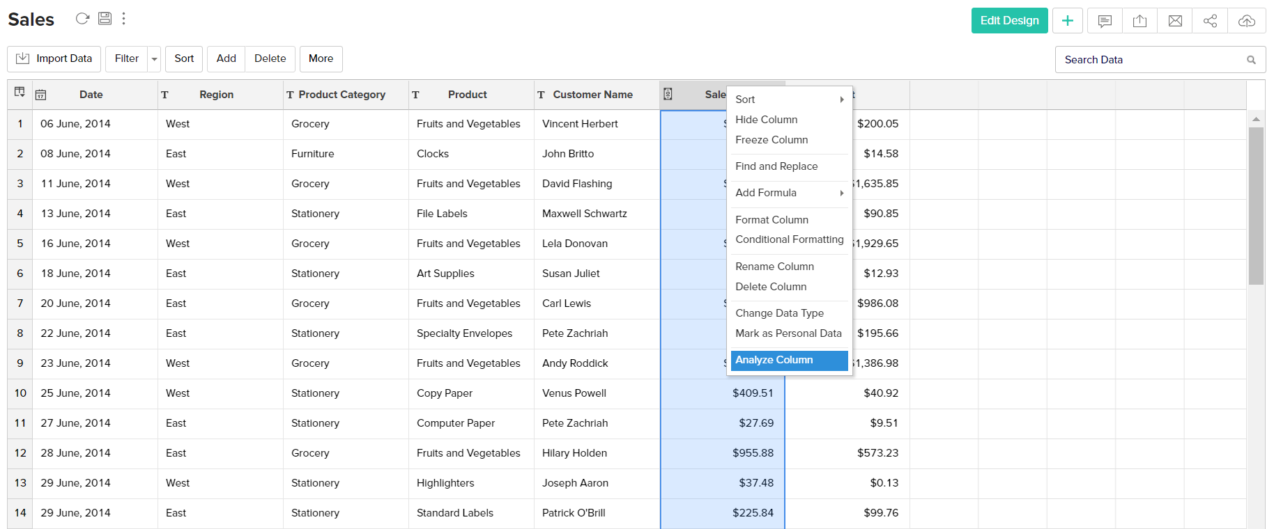 - Right-click on the column and choose the Analyze Column option from the drop-down menu.