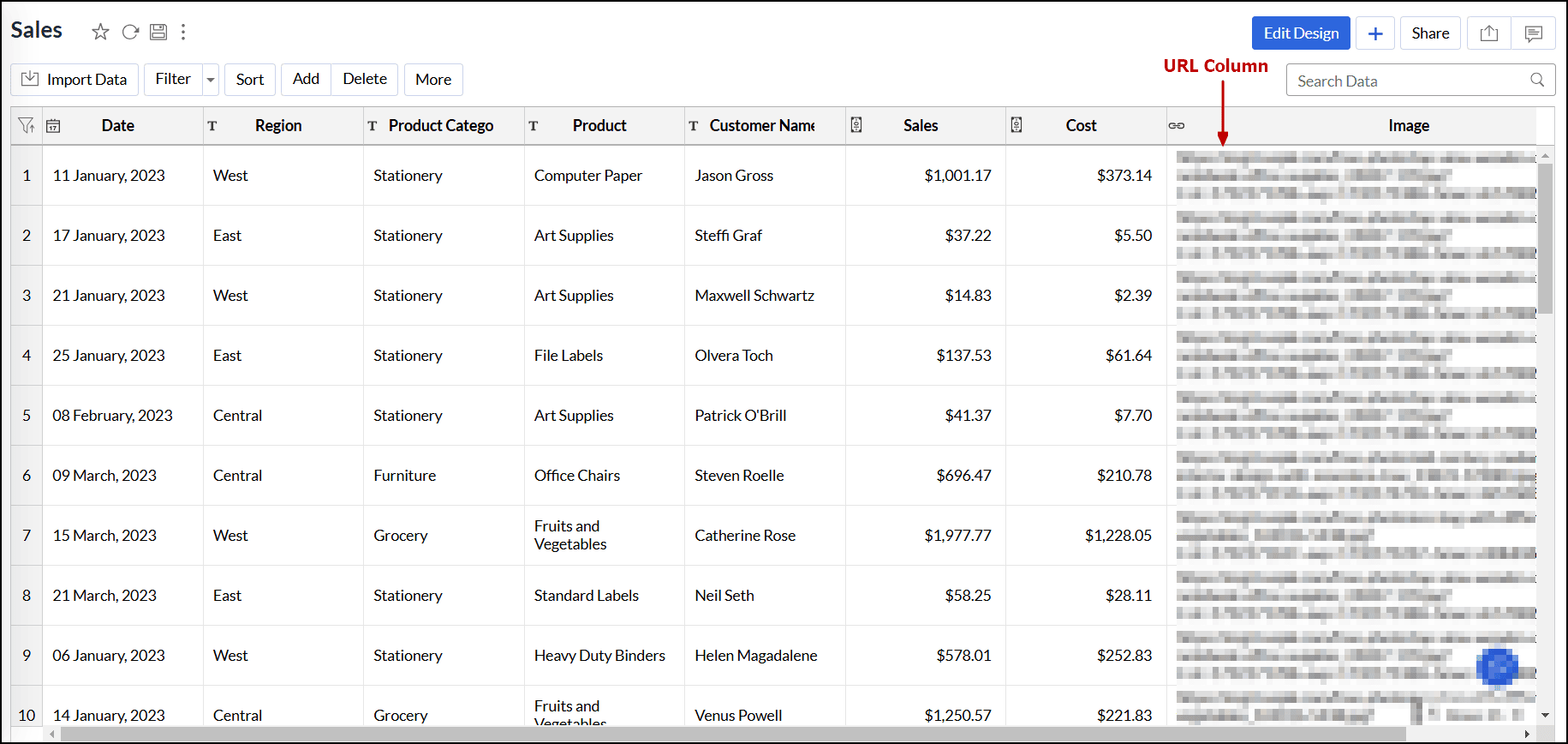 • Sorting: For a URL data type column, Analytics Plus performs sorting based on the actual URLs in the column.