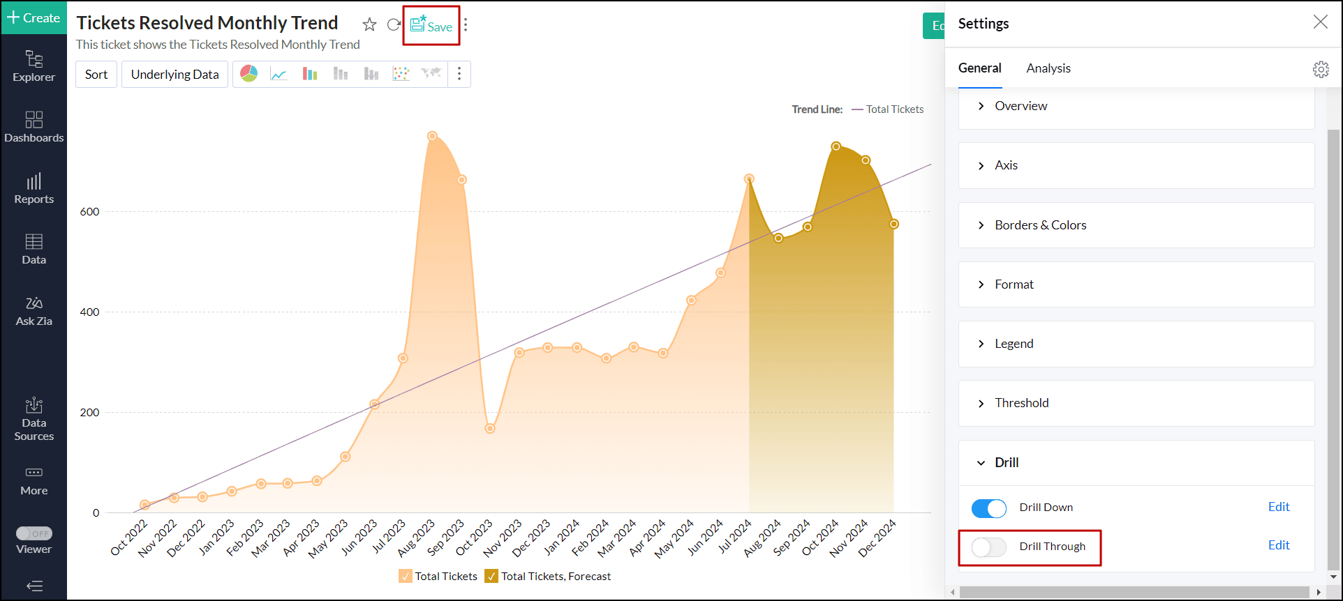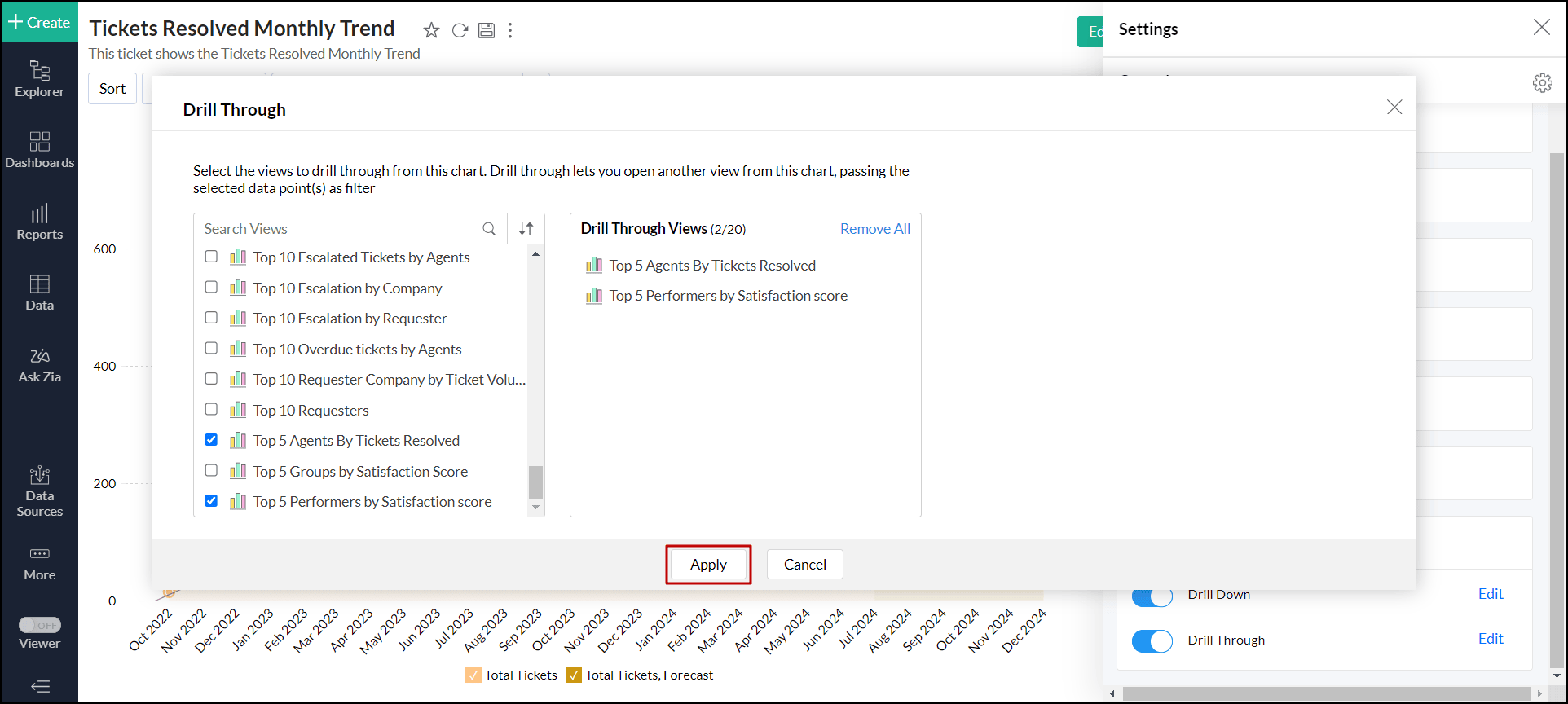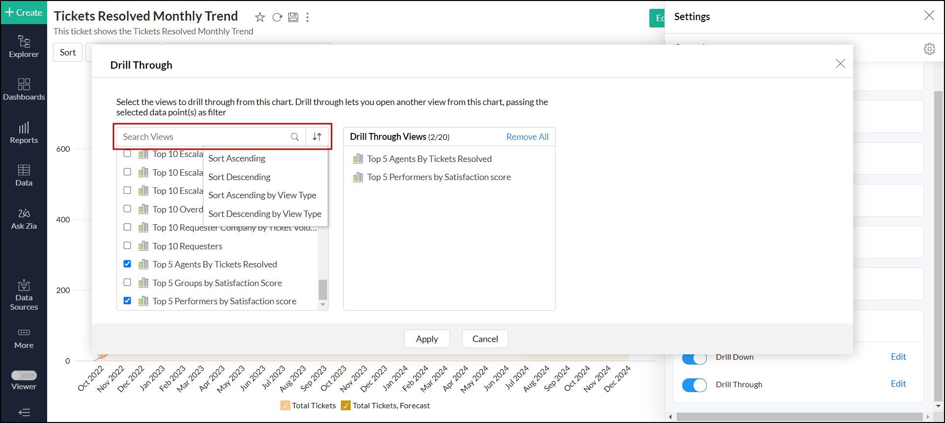 While sharing views, Analytics Plus allows report owners to enable the Drill Through option, granting other users the ability to drill through the related views.