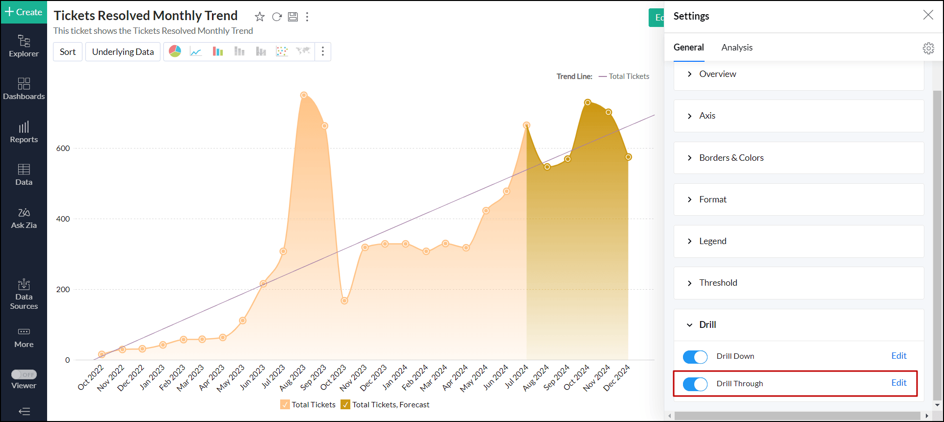 3. Enable the Drill Through toggle button, and click the Edit link next to it.