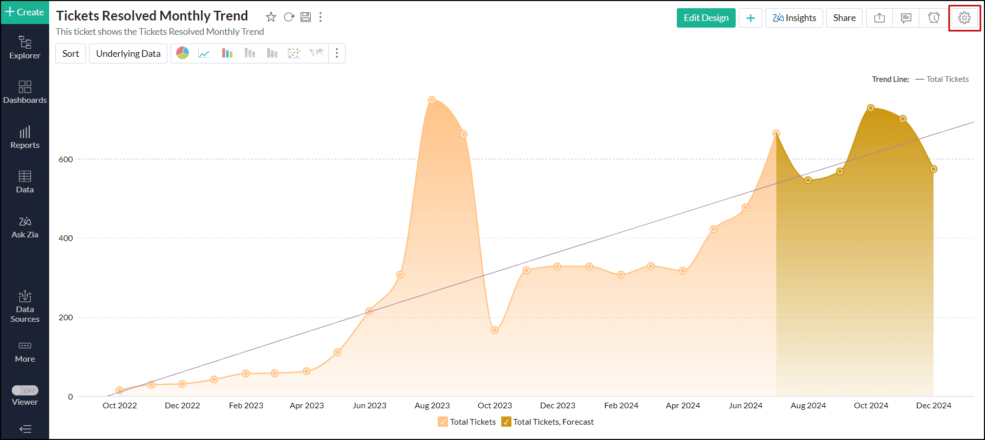 • Show Missing values: This option displays the data points with missing values in the chart. Please note that this option is displayed only when the chart has missing data points.