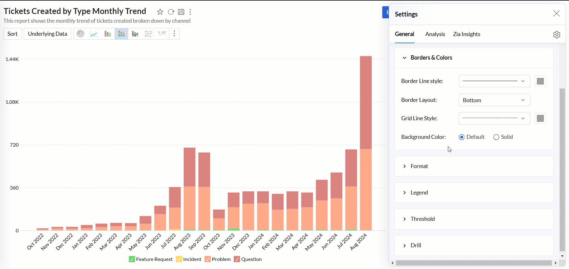 • Background Color: Apply a background color to the chart. By default, no background color is applied. Select the Solid option to choose a color if needed.