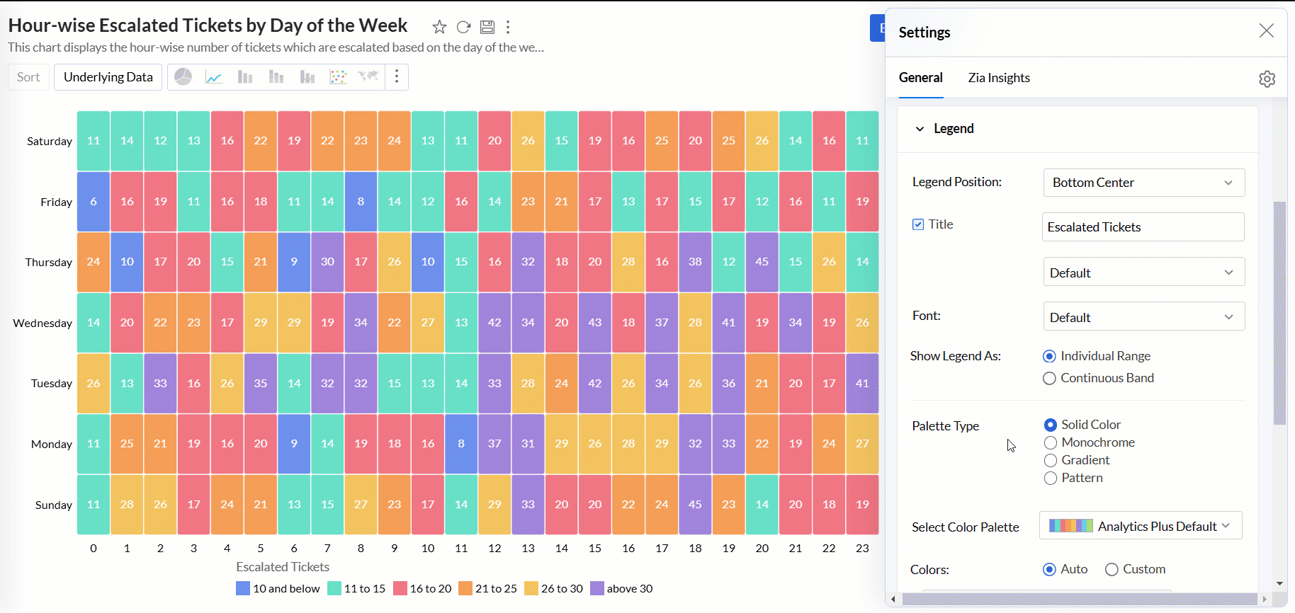 • Palette Type: Analytics Plus provides three palette types for customizing the legend colors.