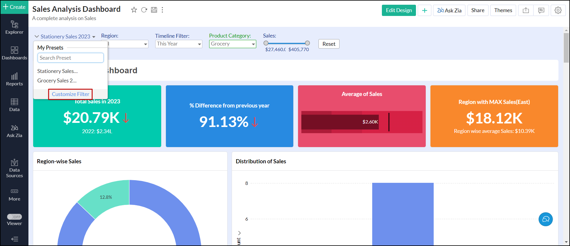 Analytics Plus allows you to combine multiple user filters and set as a preset filter for dashboards. This filter helps you to apply multiple filters simultaneously in a click. You can also add multiple preset filters to the dashboard. Follow the steps below to create a preset filter.