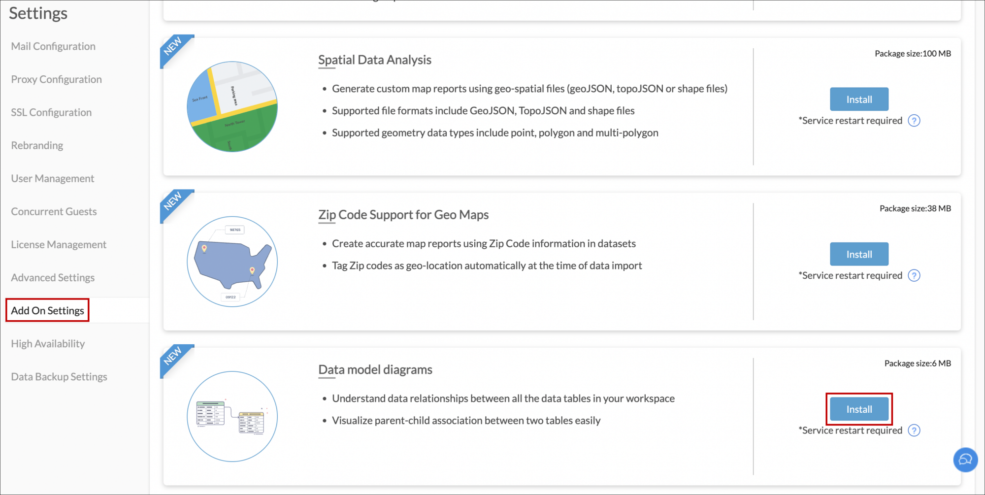 In the screen that appears, head to the Data model diagrams listing and click Install.