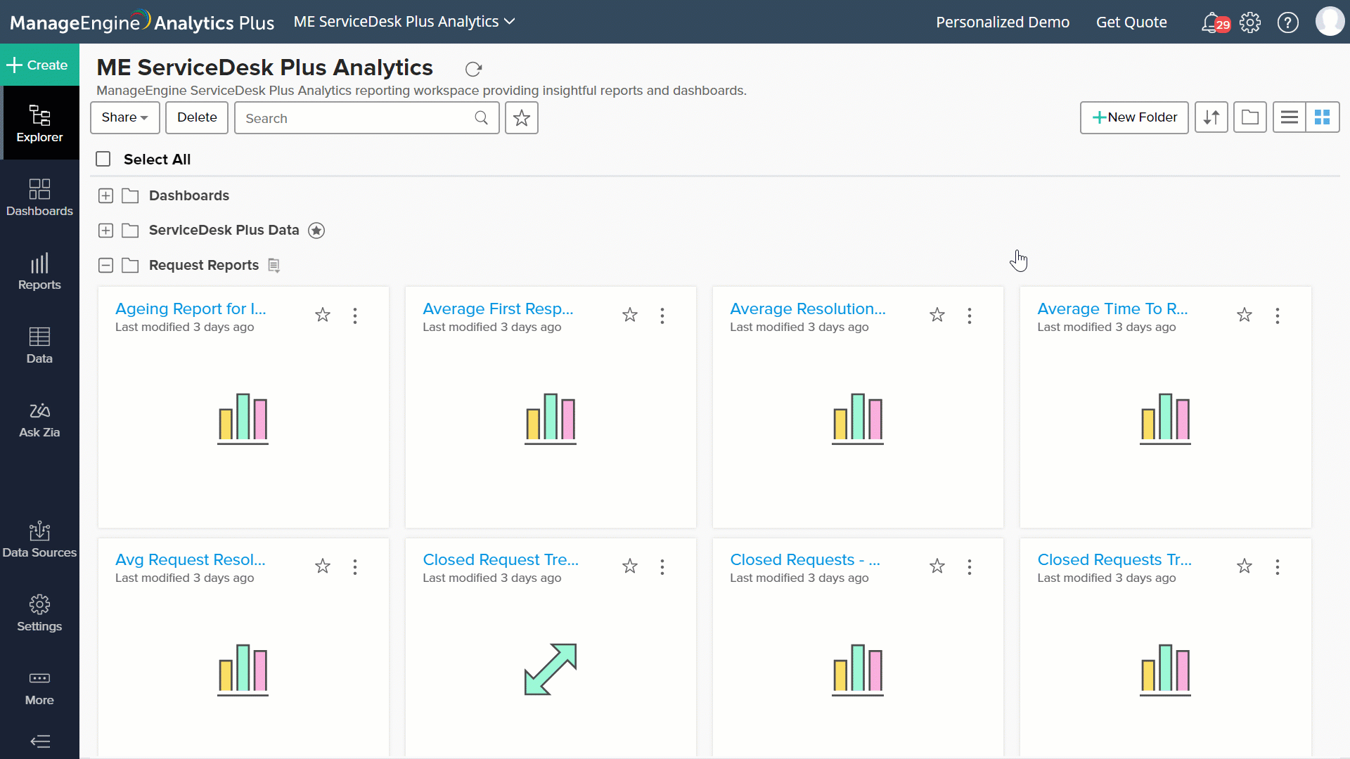 You can easily move reports, dashboards, or tables from one folder to another within a workspace in Analytics Plus. Follow the steps below to do this.
