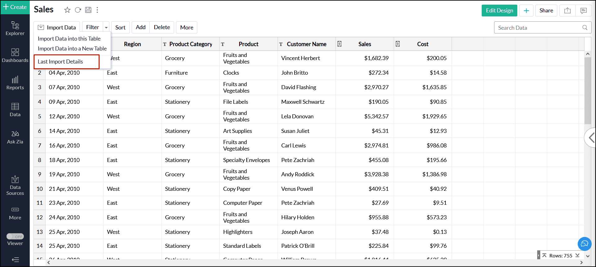 You can also view the Import Details page by opening the required table, and selecting the Import Data -> Last Import Details option.