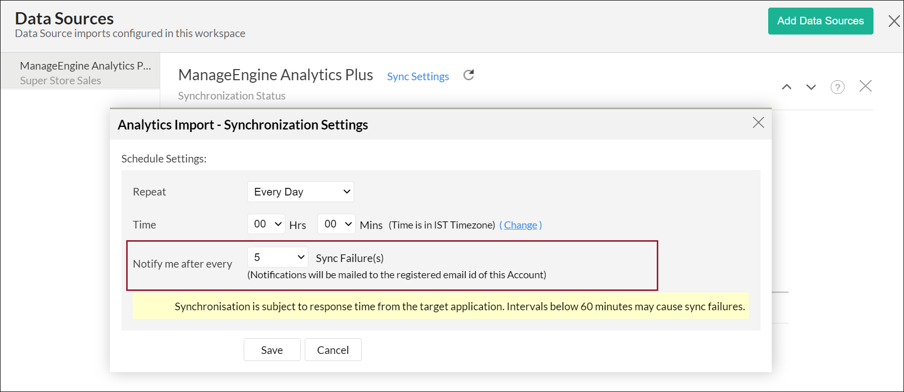 • Specify the number of consecutive import failure after which you are to be notified using the Notify me after every 'N' Sync Failure (s) section.