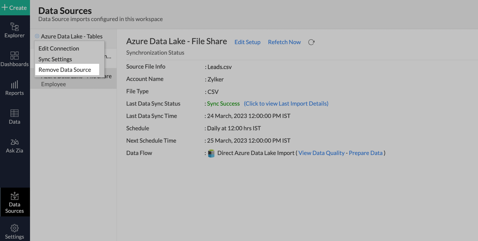 Analytics Plus allows you to connect to the data stored in Data Lake. Analytics Plus enables you to create data visualizations that help in identifying the underlying trends and optimize operational efficiency. You can also schedule imports and import data from different sources to analyze your data effectively.
