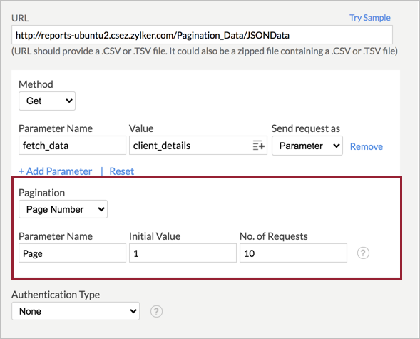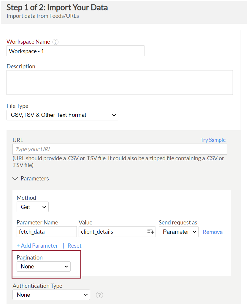 Yes. You can select the required pagination option from the Parameters section in the Import your data screen.