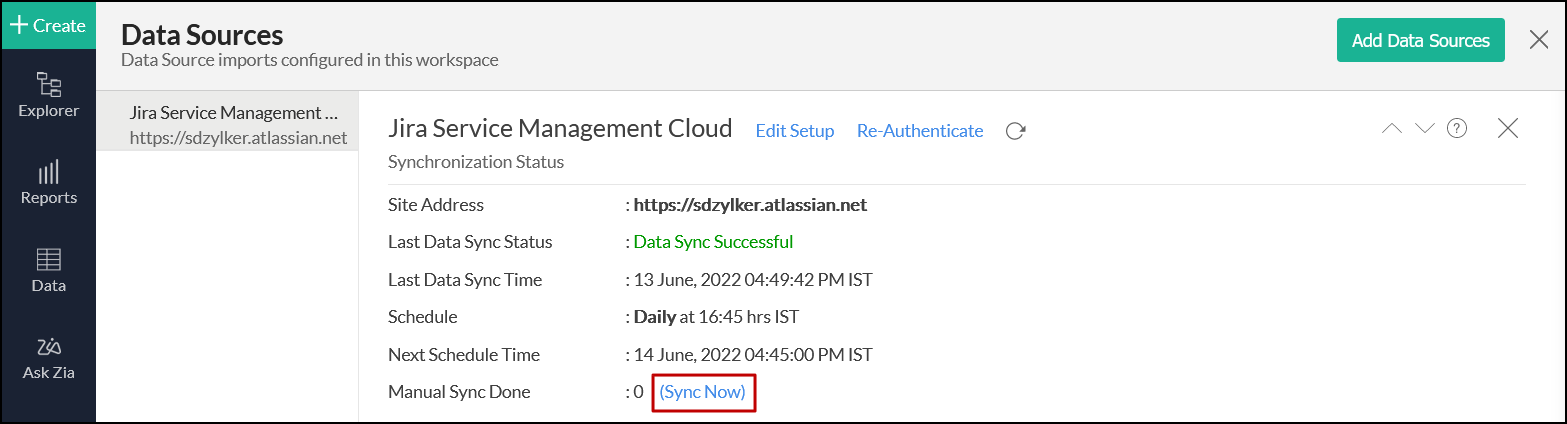 You can also access the Jira Service Management Cloud data source page, and click Sync Now.