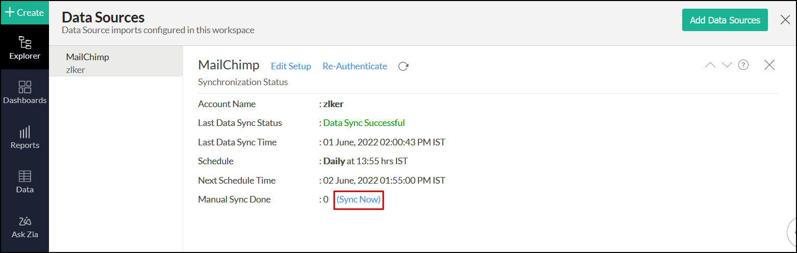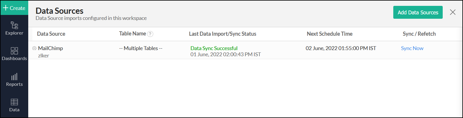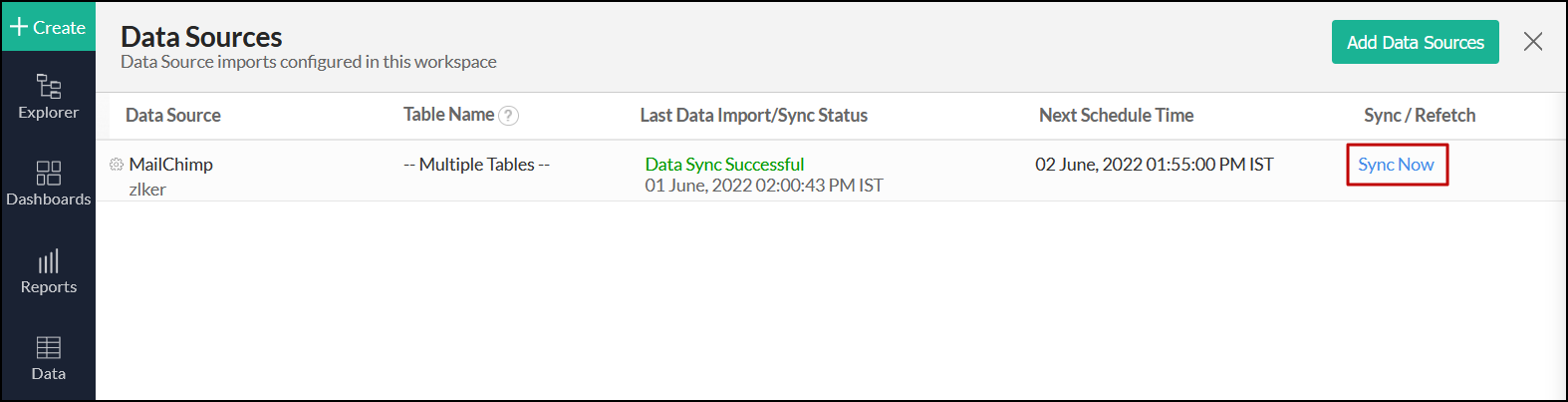 Yes. To do this, click the Data Sources option from the side panel. In the page that appears, navigate to the MailChimp source and click the corresponding Sync Now button.