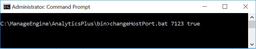 - Navigate to <Analytics Plus_Home>\bin directory from command prompt or terminal in administrator mode.