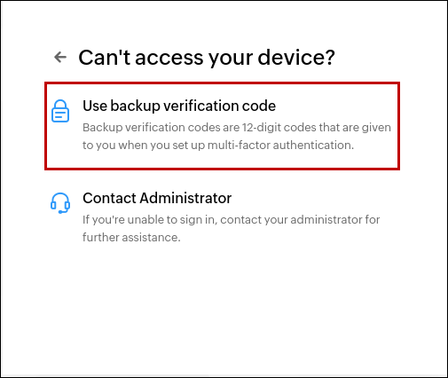• Select the Use backup verification code option.
