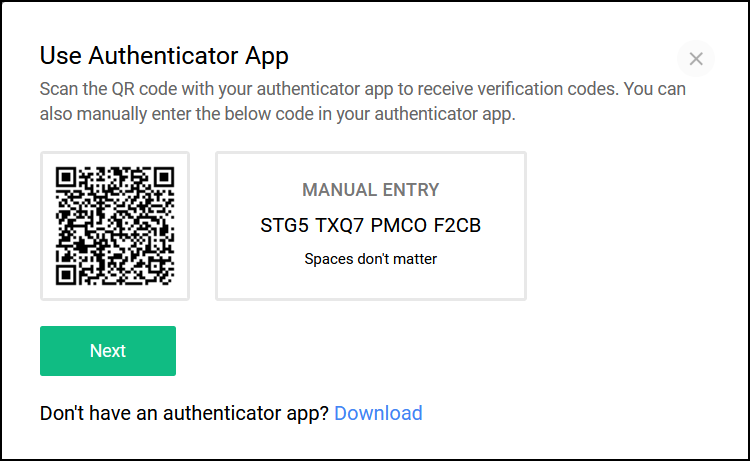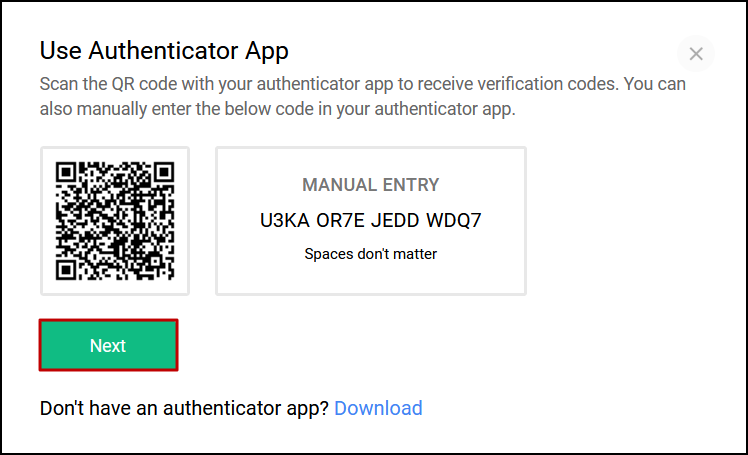 If you do not have an authenticator app, you can choose to download one of the recommended apps using the Download option below.