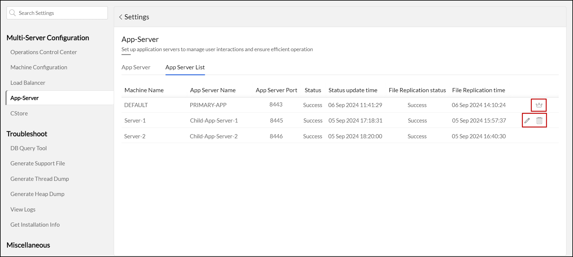 You can view all added App Server details under the App Server List tab. From this tab, you can: