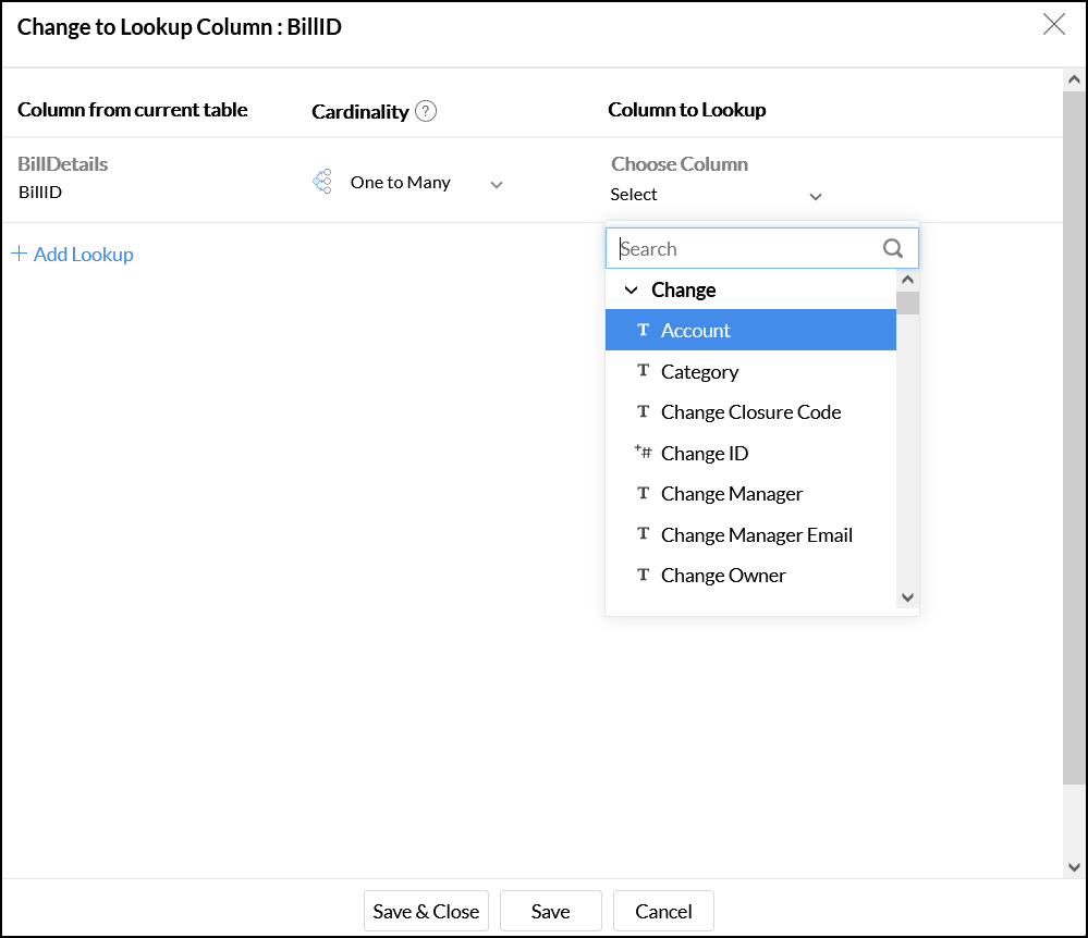 In the Change to Lookup Column dialog that appears, select the column from the second table to look up.