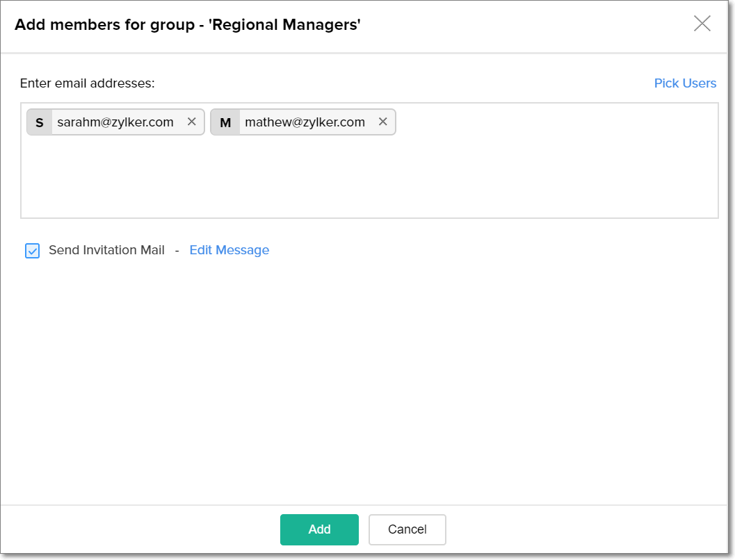 Provide the email addresses of the required users, and click Add.