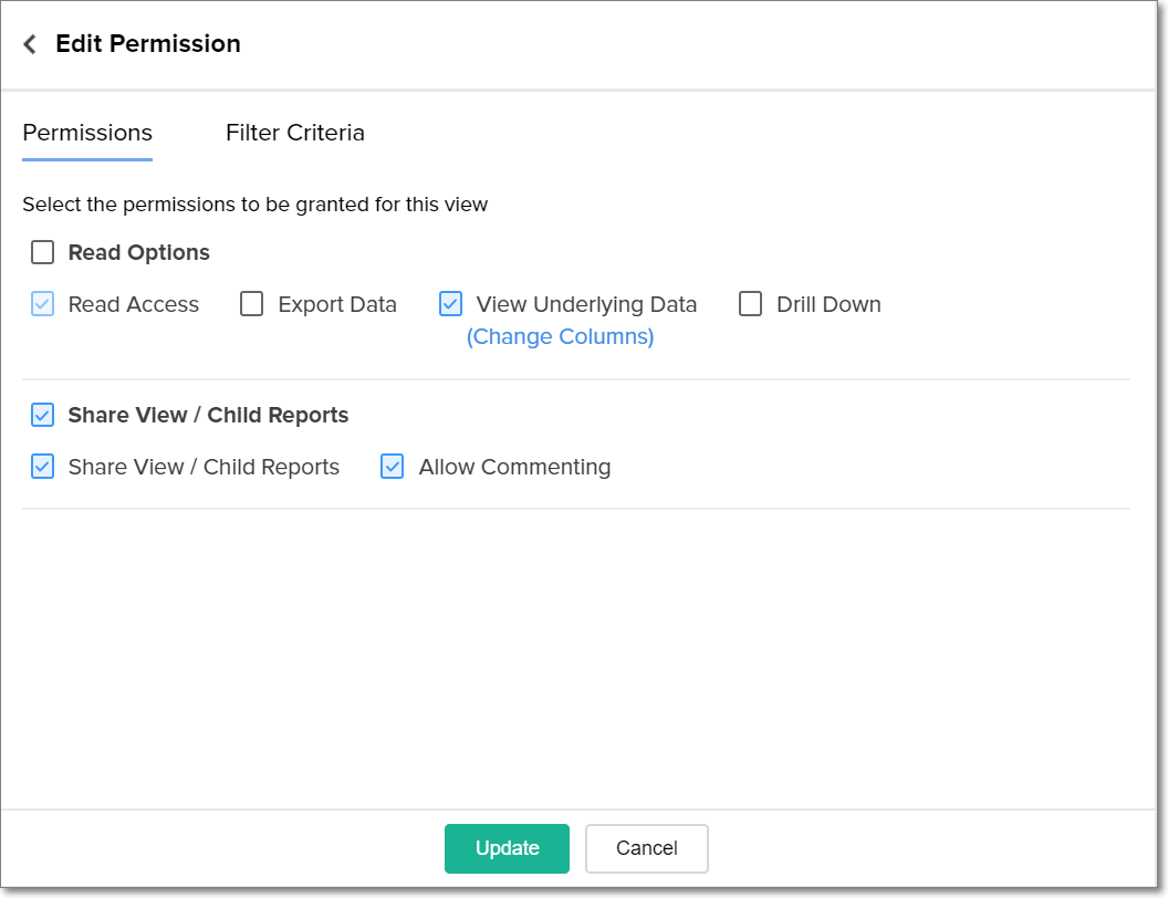 Follow the steps below to edit the permissions configured for your shared views in Analytics Plus.