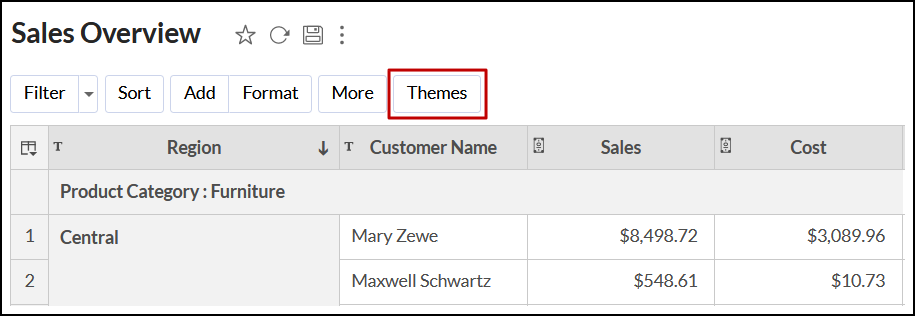 Analytics Plus offers colorful and attractive themes to customize a tabular view's appearance.