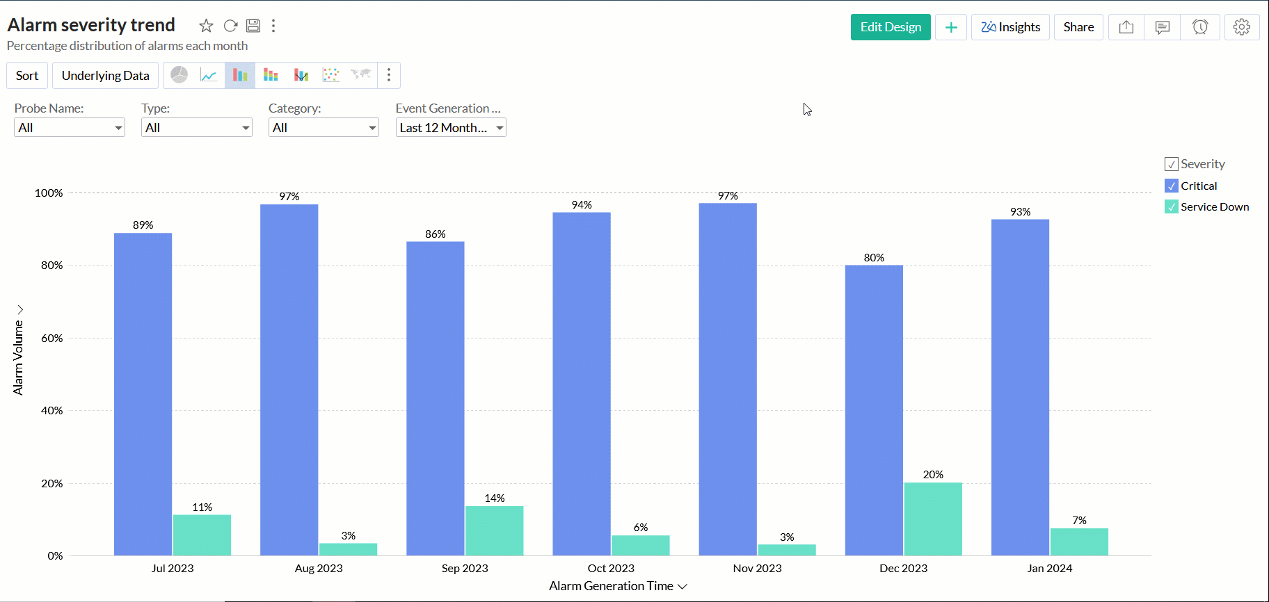 Zia Insights provides insights dynamically based on the selection made in the legend filter to help you dig deeper and derive insightful information based on the area or category of interest as per the selection.
