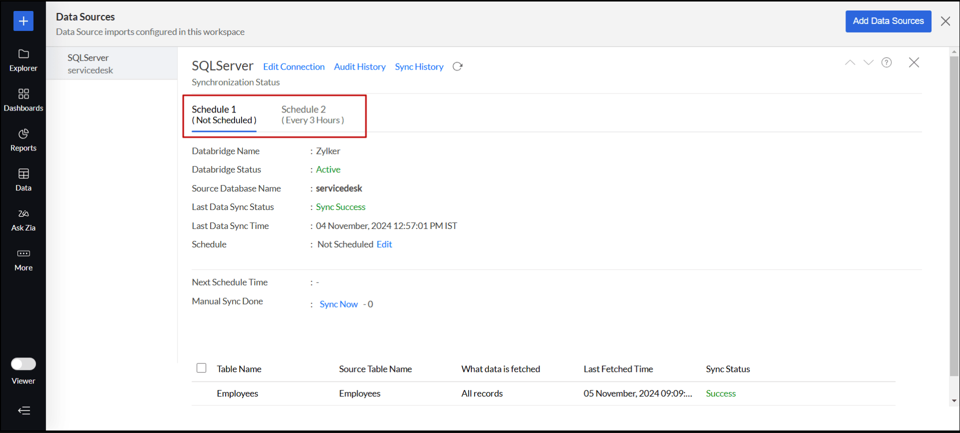The View Underlying Data feature in Analytics Plus has been updated so that you can now toggle between data from related tables. Earlier, this feature only supported individual tables. So, if you had a report created using data from two related tables, and wanted to view the underlying data, you could only see the tables separately. But now, you could view the individual table in addition to the related table.