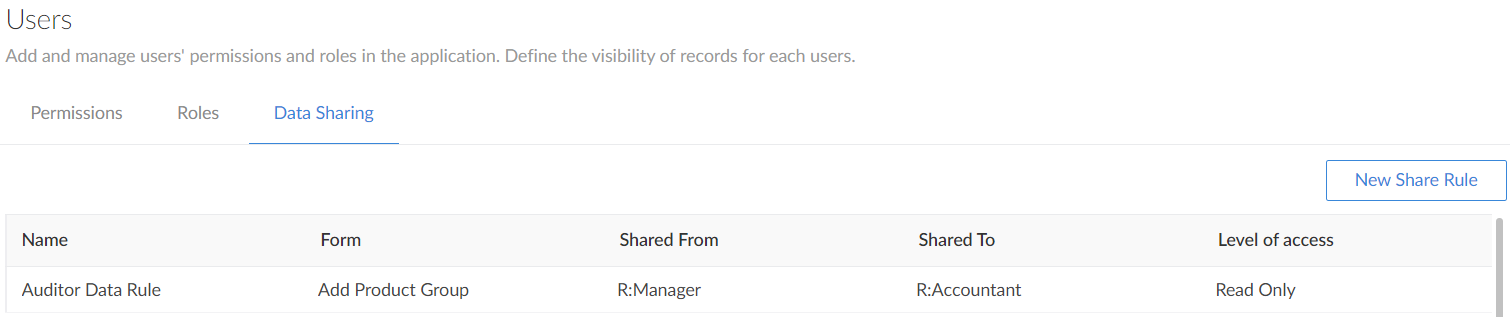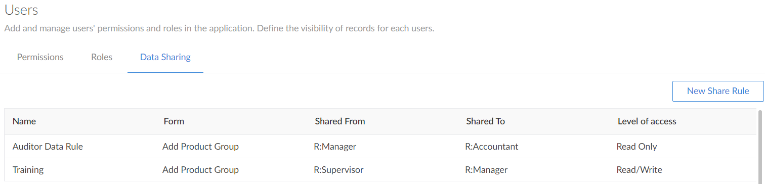 To add a new data sharing rule:- Click New sharing rule in the top-right corner.