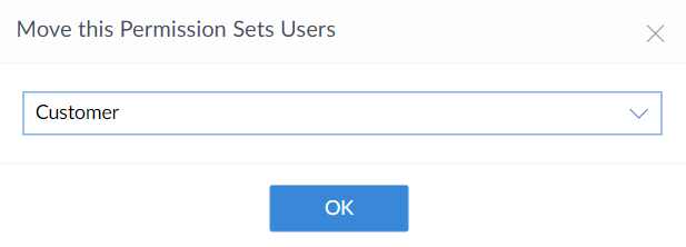 - In the pop-up that appears, choose the permission set to move the customers belonging to the deleted permission to. Then click Ok.