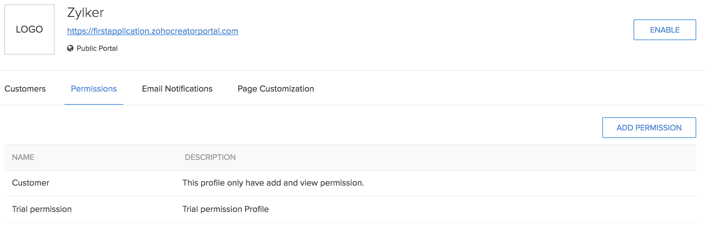 - The permission will be deleted and only the permissions which remain will be displayed.